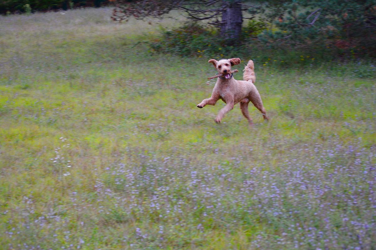 Og Ludo leker pinnelek på fransk jord. Lykkelig uvitende om at han er i sin rases opprinnelsesland og faktisk er landets nasjonalhund, Caniche Royal.