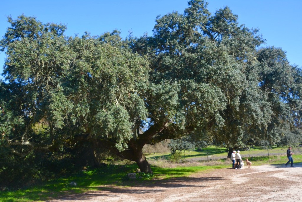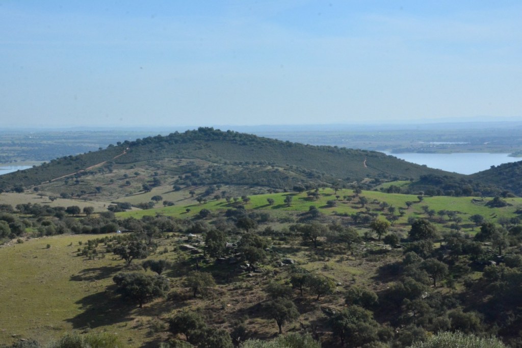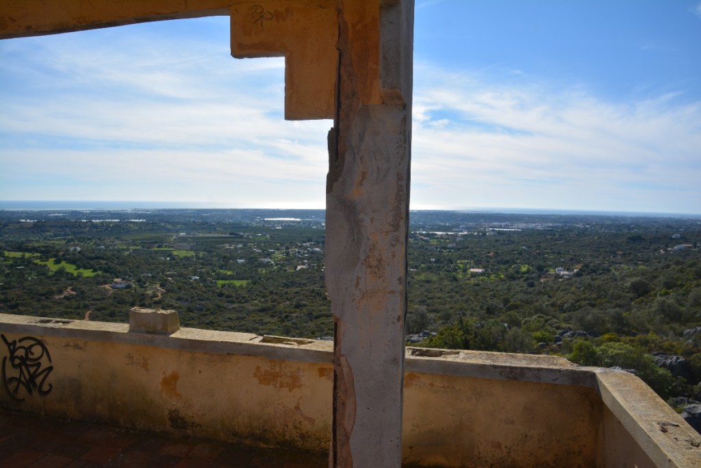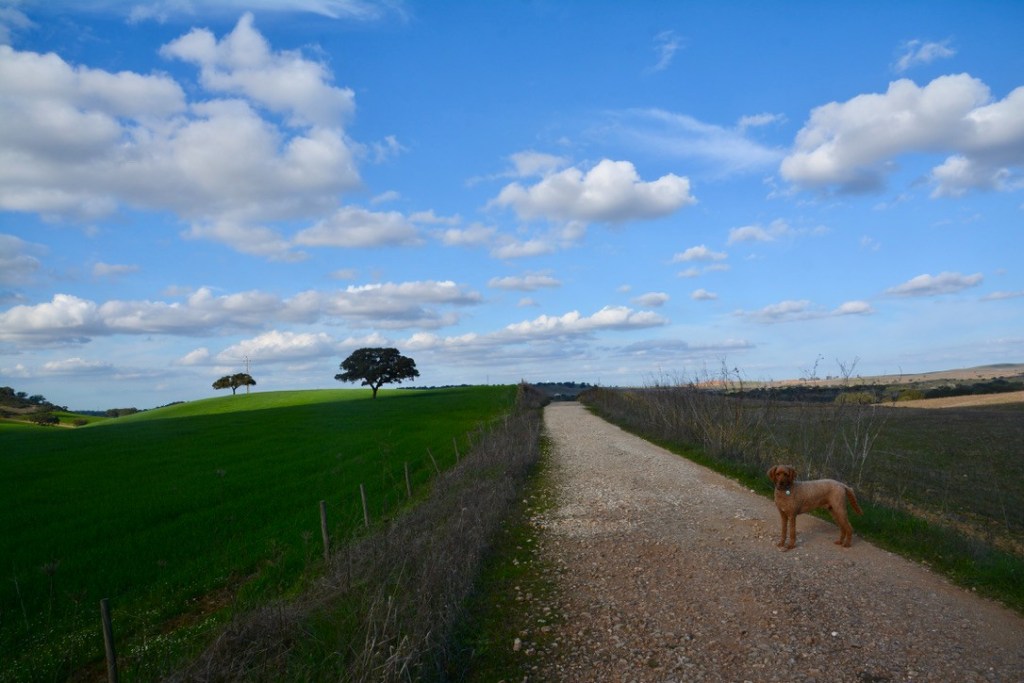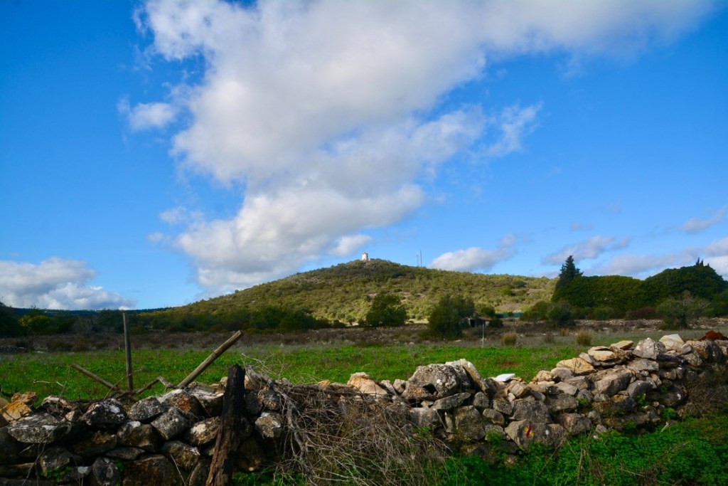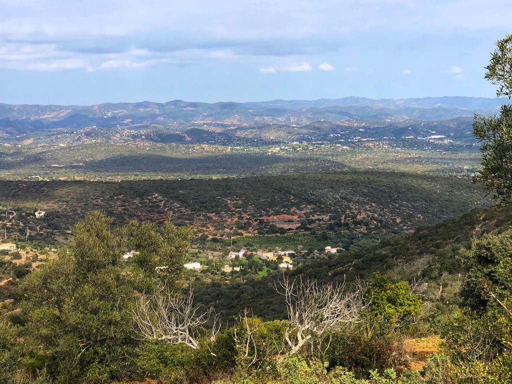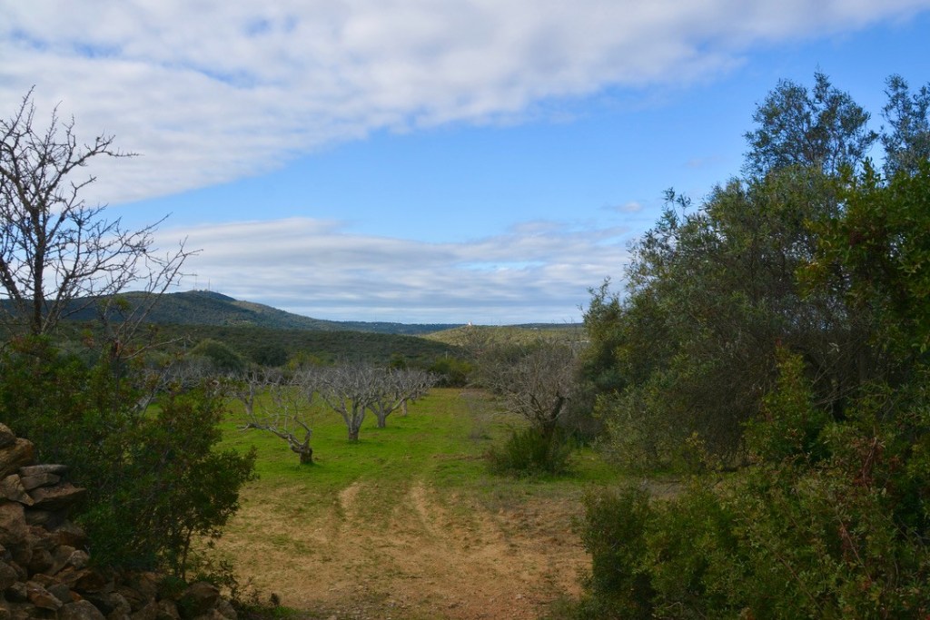 Nok om det. Min turvenn og jeg starter oppover den merkede stien som tok oss ned til Moncarapacho ved forrige forsøk. Denne gang følger vi merkingen videre østover som er skiltet med Cerro da Cabeça, Miradouro. Skjønt enige om at dette vil lede oss til toppen. Første del er steinet og ulendt gjennom en trolsk alveskog før vi havner på en grusvei rett østover. Hyggelig nok gjennom kulturlandskapet, men den leder slett ikke mot toppen. Så vi lurer litt på denne skiltingen med Miradouro og 2,3 km. Vi går og går uten å komme et skritt nærmere toppen. Derimot kommer vi etter hvert frem til en asfaltert bilvei, M1332. Der dreier løypeanvisningen endelig i riktig retning, og vi kommer til det som visstnok er startpunktet for å gå opp til utkikkspunktet. Vi kunne altså kjørt hit, men da hadde vi ikke fått med oss alvestien.