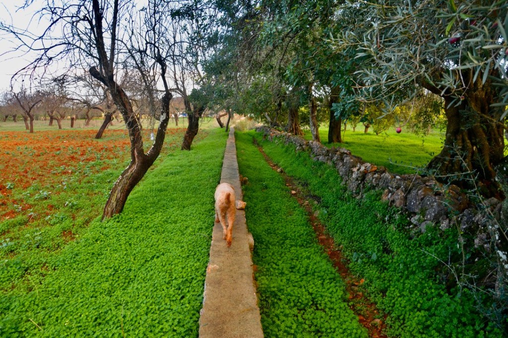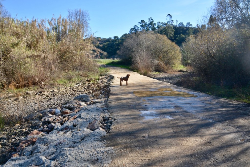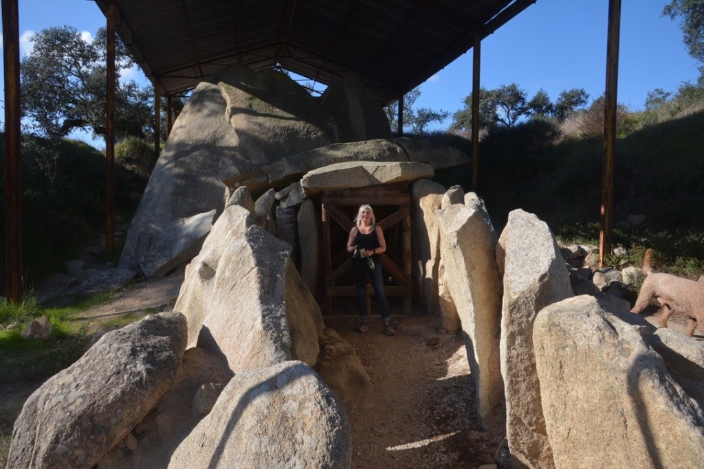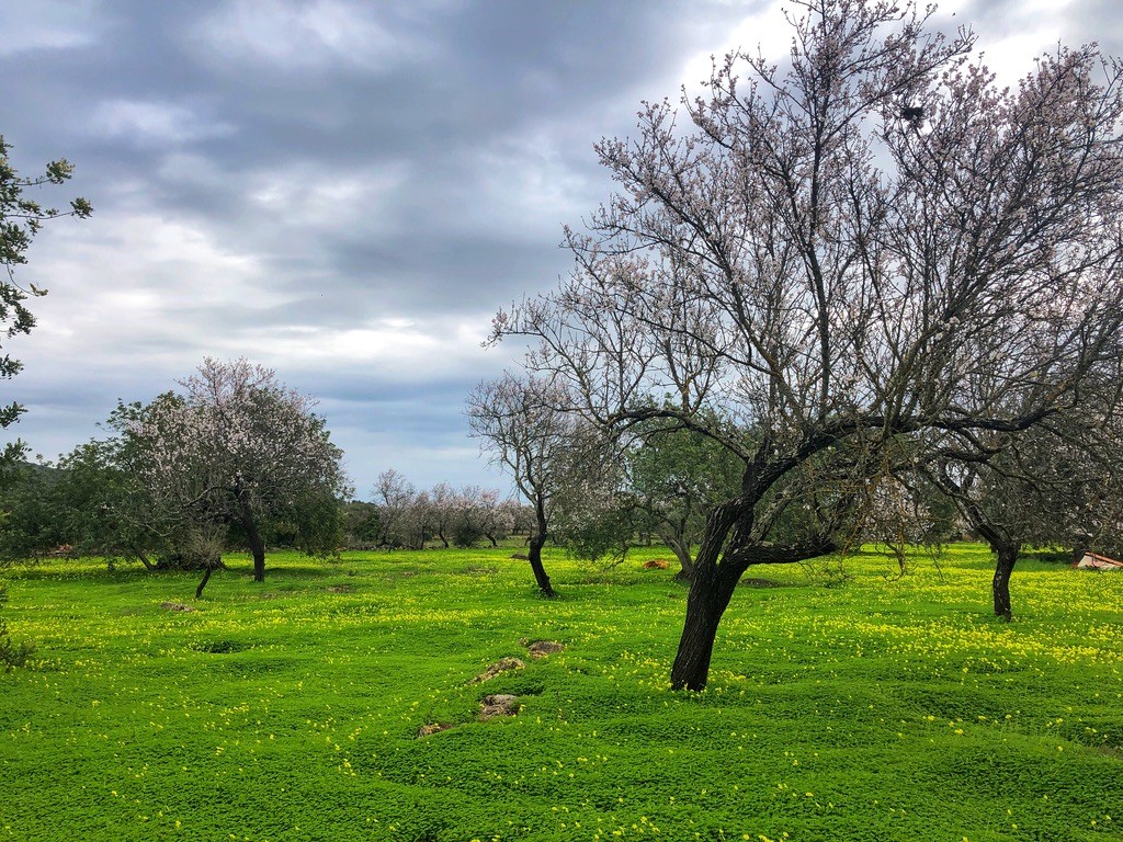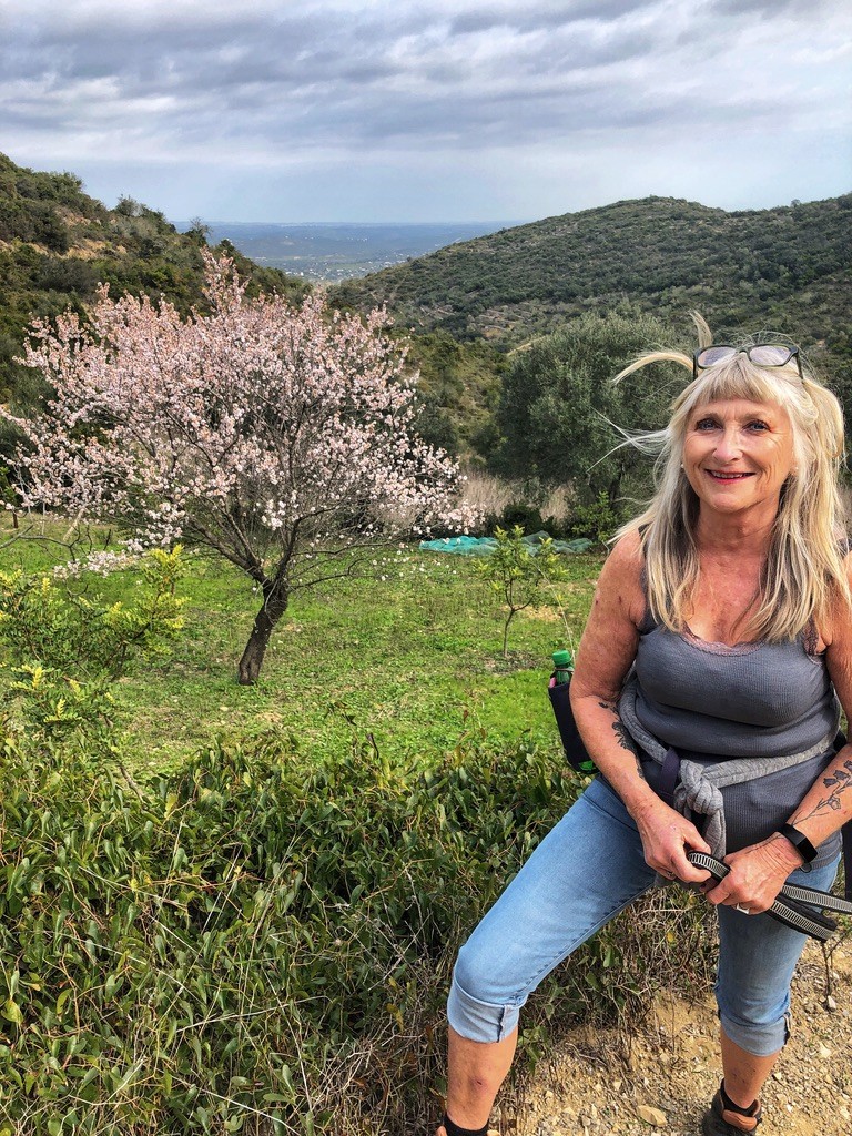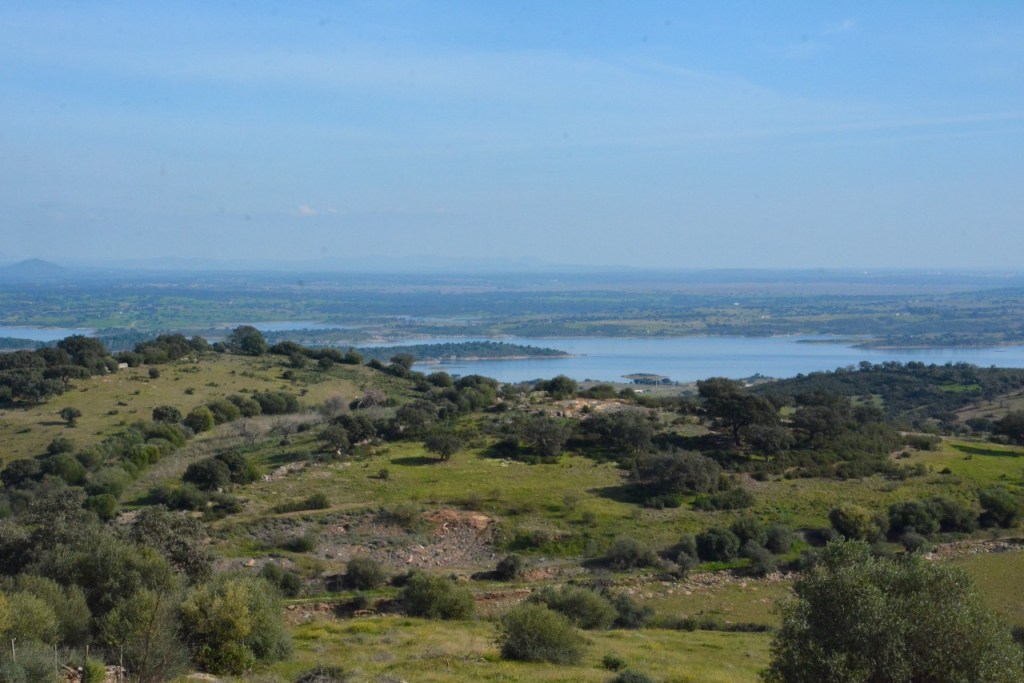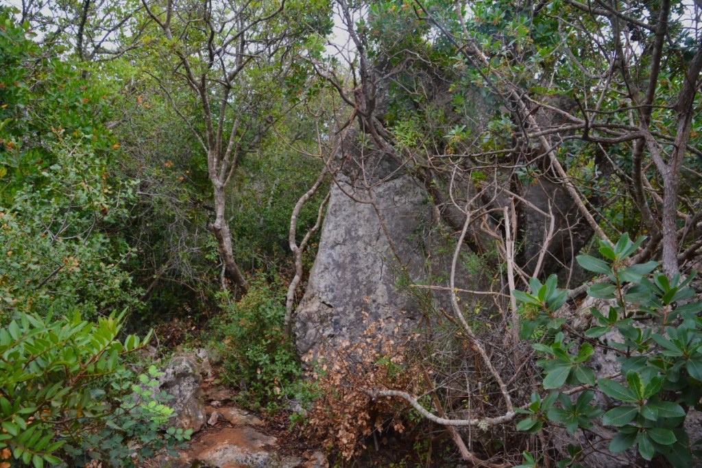 Nok om det. Min turvenn og jeg starter oppover den merkede stien som tok oss ned til Moncarapacho ved forrige forsøk. Denne gang følger vi merkingen videre østover som er skiltet med Cerro da Cabeça, Miradouro. Skjønt enige om at dette vil lede oss til toppen. Første del er steinet og ulendt gjennom en trolsk alveskog før vi havner på en grusvei rett østover. Hyggelig nok gjennom kulturlandskapet, men den leder slett ikke mot toppen. Så vi lurer litt på denne skiltingen med Miradouro og 2,3 km. Vi går og går uten å komme et skritt nærmere toppen. Derimot kommer vi etter hvert frem til en asfaltert bilvei, M1332. Der dreier løypeanvisningen endelig i riktig retning, og vi kommer til det som visstnok er startpunktet for å gå opp til utkikkspunktet. Vi kunne altså kjørt hit, men da hadde vi ikke fått med oss alvestien.