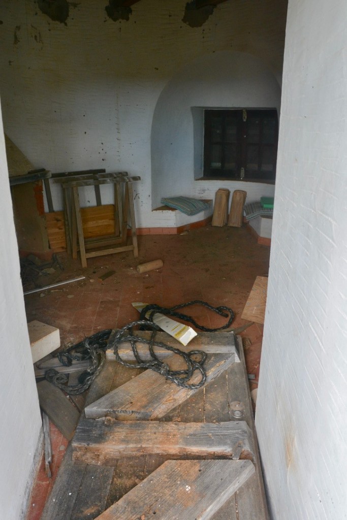 John Elvin har utstøtt sine sedvanlige «oh no’s» på vei oppover, men nå er det jeg som sier «oh no!». Ikke tale om at han heller skal gå opp den trappen. På skjelvende høydeskrekkbein får jeg ham med meg ned. Men sannelig har mitt manglende mot trigget noe i gubben som bestemt hiver seg rundt og går opp igjen. Helt opp på toppen. Enda godt jeg inhalerte såpass med Bricanyl på vei oppover at lungekapasiteten er ok. For jeg holder pusten til han er vel nede igjen.