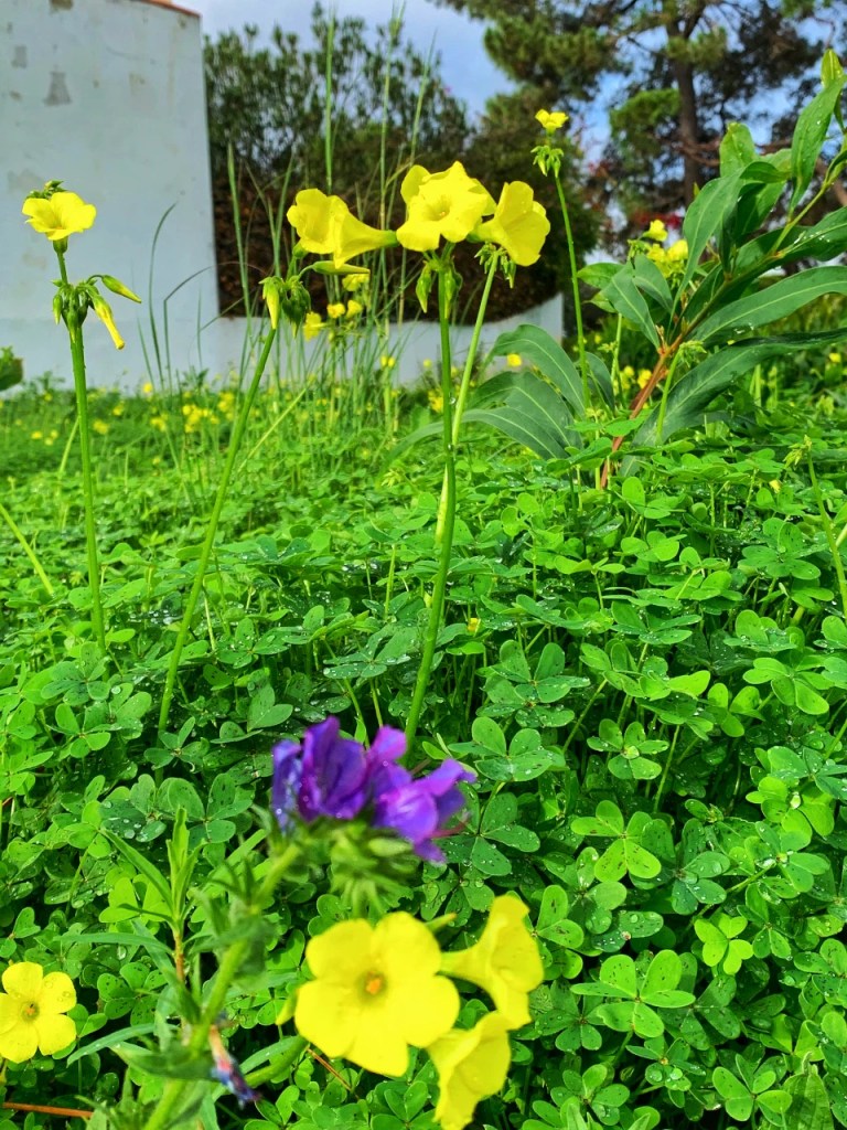 Markene skinner grønne og friske etter regnet. Blomster og beitesjampinjonger tyter opp overalt.
