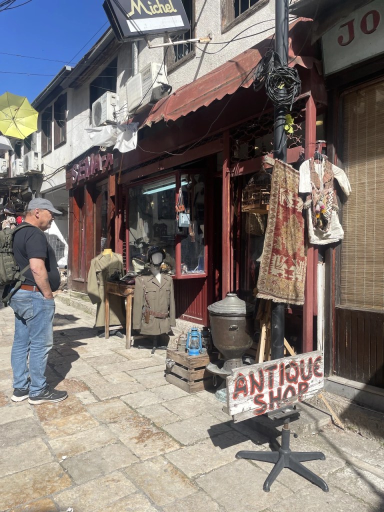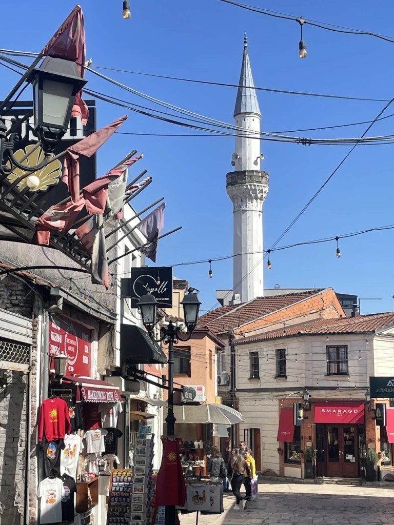Vår snille vert kjører oss inn til Skopje. Byen Jan har vært i nitten ganger da han kjørte trailer for Forsvaret. Det var aldri mulighet til å se den fine delen av byen som heldigvis ikke ble berørt av krigsskader. Byen ble berget av en hårfin etnisk balanse opprettholdt av NATO.
