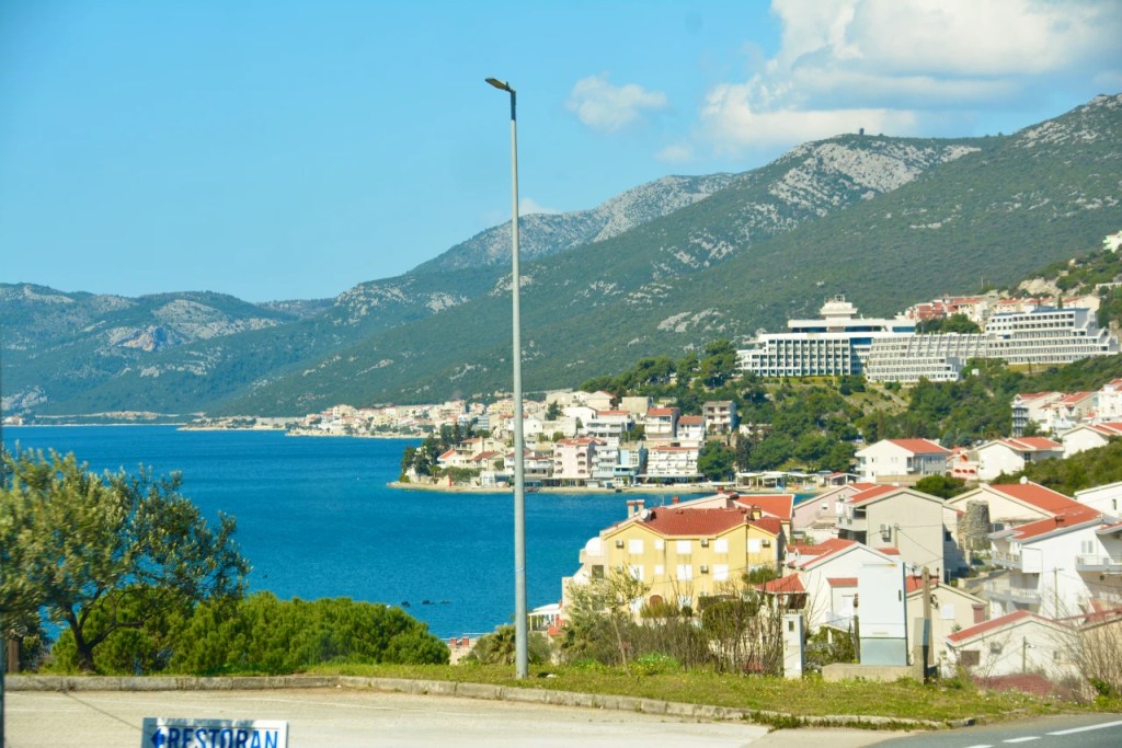 Oppdelingen i nye stater etter Balkankrigen var ikke bare bare. Turisme er viktig inntekt. Kroatia og Montenegro fikk lange, inntektsbringende kystlinjer. Bosnia lå an til å miste adgangen til kysten og dermed denne viktige næringen. Heldigvis fikk de kjempet seg til en smal kyststripe midt i Kroatia. Nærmest en liten appendix. Her finner vi den lille byen Neum med nydelige sandstrender. Og en god del hoteller. Jeg innbiller meg at det er litt fredeligere her enn i Kroatia.