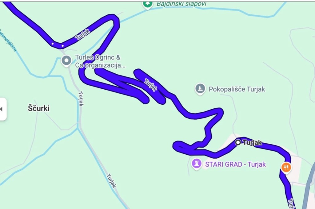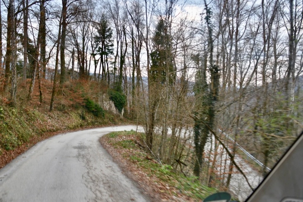 Som om ikke vei 106 som vi følger her i Slovenia er landevei nok, finner jeg på at vi skal ta av ved Turjak og følge en annen vei inn mot Ljubljana. Veien har ikke veinummer. Den heter viss bare Turjak. Trøste og bære for en vei! Kan det virkelig være mulig å komme frem her?